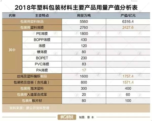 快遞業的繁榮是其中之一。2018年全國快遞業共消耗編織袋約53億條、塑料袋約245億個、封套約57億個、包裝箱約143億個、膠帶約430億米,國內使用的包裝膠帶一年可以纏繞地球1077圈。