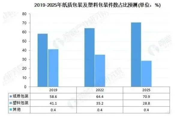 紙質(zhi)包裝快遞中(zhong),瓦楞紙使用占比為(wei)96.18%,按單(dan)件紙質(zhi)包裝快遞為(wei)288.08克,單(dan)件塑料包裝40.87克測算,2025年(nian),受禁塑令影響,用于(yu)快遞包裝的瓦楞紙潛(qian)(qian)在(zai)需求增(zeng)量為(wei)459.66萬(wan)噸(dun),可降(jiang)解塑料潛(qian)(qian)在(zai)需求增(zeng)量為(wei)158.78萬(wan)噸(dun)。