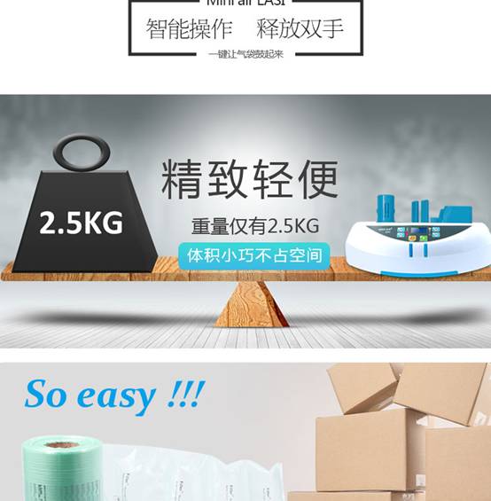 MINIAIR EASi是目前為止全球(qiu)最輕便的(de)緩沖氣墊(dian)(dian)機(ji)(ji),整機(ji)(ji)重量僅2.5kgs,外觀精美小巧,迷你型(xing)氣墊(dian)(dian)機(ji)(ji)融入極簡結(jie)構設計(ji)理念,機(ji)(ji)器運行(xing)高效(xiao)穩定,通過歐盟CE與北美UL安規認證,符合全球(qiu)機(ji)(ji)器使用安全標準。MINIAIR EASi具備便捷的(de)智能(neng)化(hua)操作(zuo)界(jie)面,LED屏(ping)顯;可即(ji)時(shi)上線進行(xing)氣墊(dian)(dian)制作(zuo),節省(sheng)包材堆放空間。MINIAIR EASi以其輕便的(de)設計(ji)與具有競爭優勢的(de)成本,是眾多(duo)小用戶的(de)首選(xuan)款(kuan)式。一臺EASi迷你型(xing)氣墊(dian)(dian)機(ji)(ji)比一粒籃球(qiu)還(huan)小。