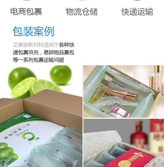 Filler充氣袋  |   Wrapper充氣墊  |   氣柱緩沖包裝  |   葫蘆膜袋  |   現場發泡包裝  |