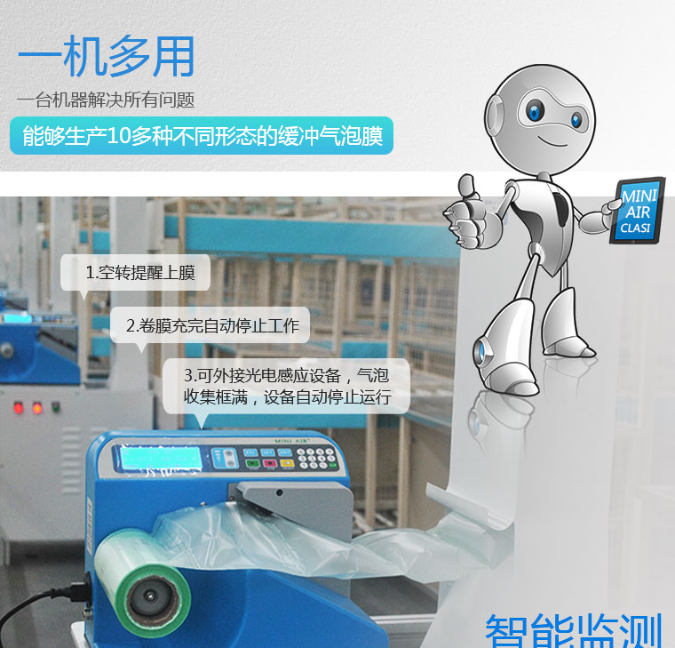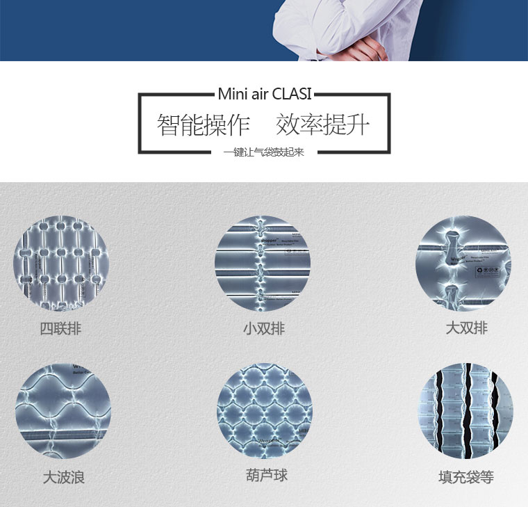 MINIAIR CLASi緩沖氣墊系統(tong)擁(yong)有行業(ye)內(nei)先(xian)進(jin)的軟件(jian)技術和獨創(chuang)的結構設(she)計,穩定的充(chong)氣熱封(feng)系統(tong)。