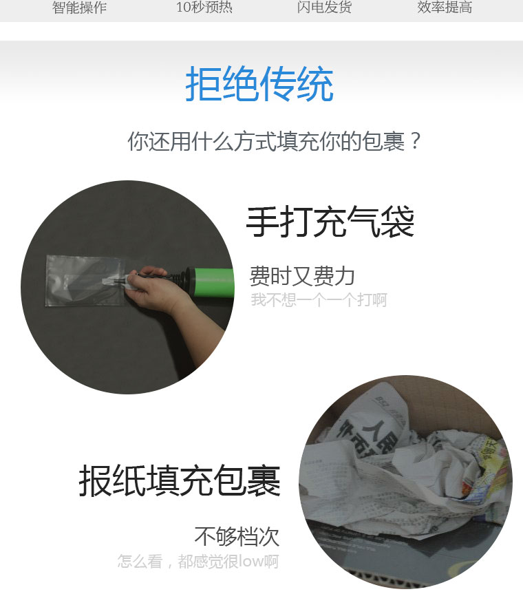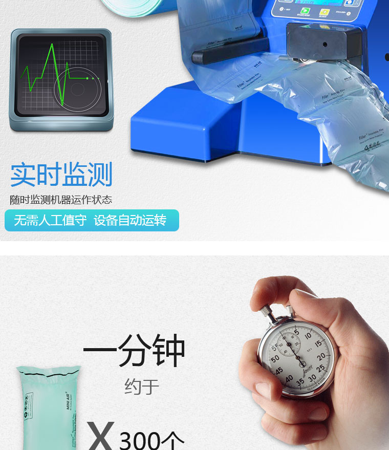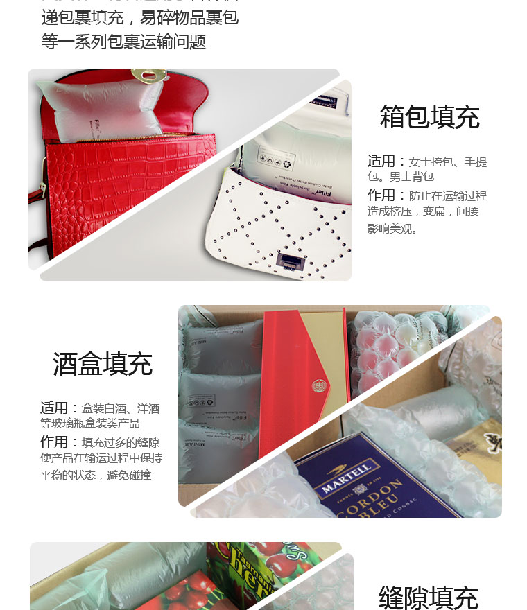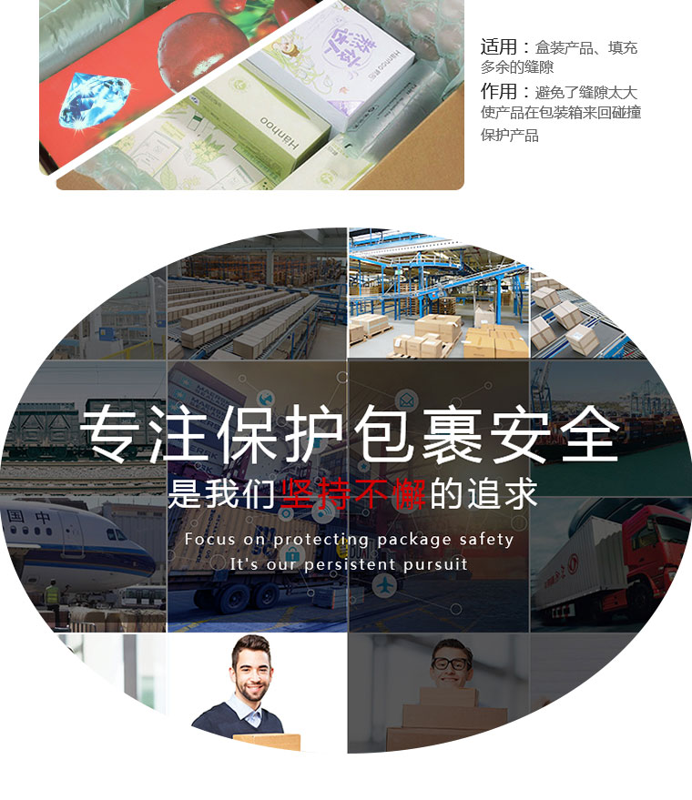 核心加熱技術(shu),使設備達到良好的薄膜(mo)密封效(xiao)果,避免空氣泄漏;空氣袋即(ji)使儲(chu)放1個月(yue),體積仍能(neng)維持80%以上(shang)。