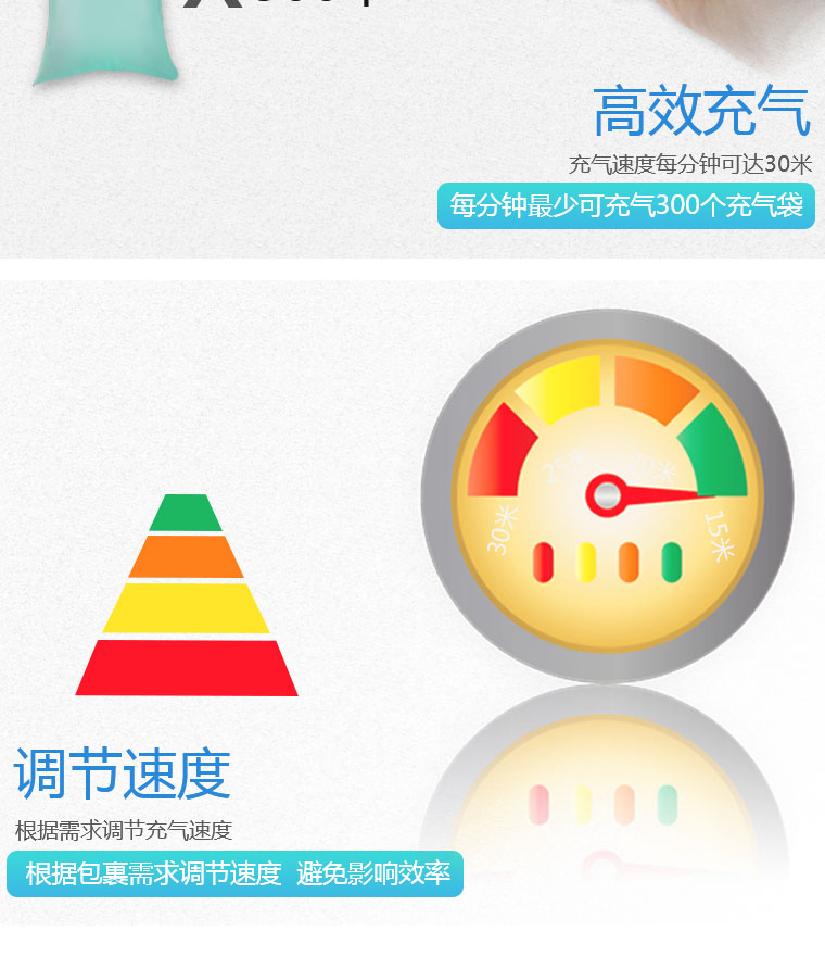 智能化(hua)操作(zuo)界面,LED屏顯,可根(gen)據所使用薄膜的(de)(de)類(lei)型和每個包裝所需要的(de)(de)氣墊數(shu)量來調(diao)節機器(qi)的(de)(de)運行(xing)(xing)時間,智能化(hua)感(gan)應環境溫度自行(xing)(xing)調(diao)整充氣熱封參數(shu)以達到(dao)優(you)質的(de)(de)充氣效果。