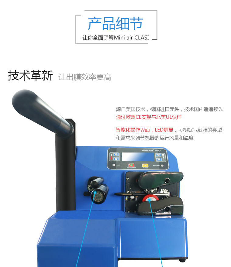 采(cai)用德國(guo)進口關(guan)鍵元(yuan)器(qi)件(jian)以保(bao)證(zheng)設備(bei)穩定性,氣(qi)墊技術國(guo)內遙遙領先。并通過歐盟CE與北美UL認證(zheng),符合全球機器(qi)使用安全標準。